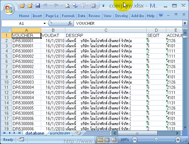 :D ในชีท Database เราสามารถแยก Debit และ Credit กันด้วย Field (ชื่อคอลัมน์) ไหน หรือแยกกันได้อย่างไรครับ