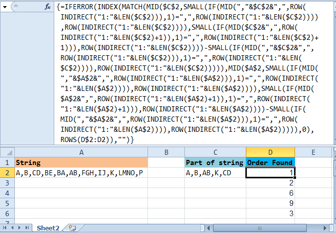 ROW(INDIRECT("1:"&LEN($C$2))))),MID($A$2,SMALL(IF(MID(","&$A$2&",",