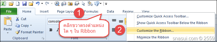 1. คลิกขวาที่ตำแหน่งใด ๆ บน Ribbon