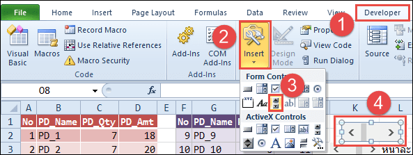 D. เขียนสูตรเพื่อนำข้อมูลมาแสดงตามเงื่อนที่เลือกจาก Scroll Bar