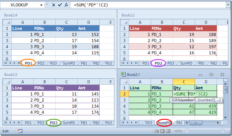 =Sum('PD*'!C2)